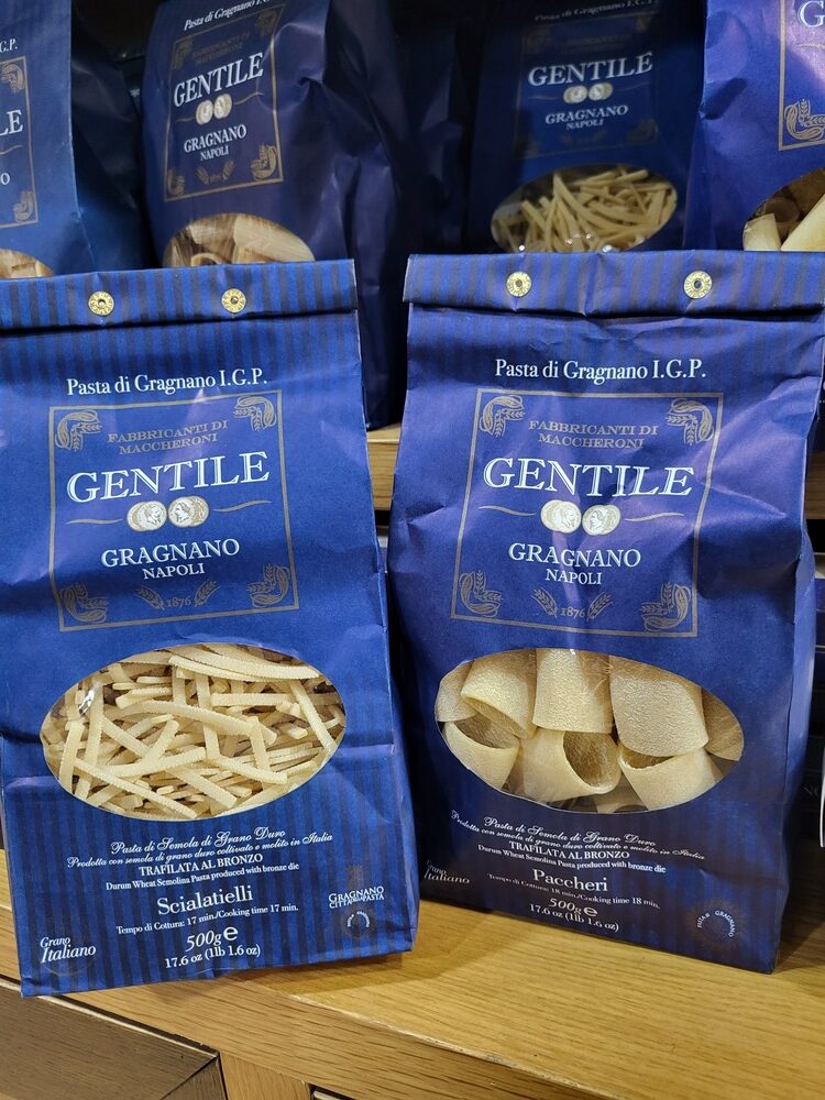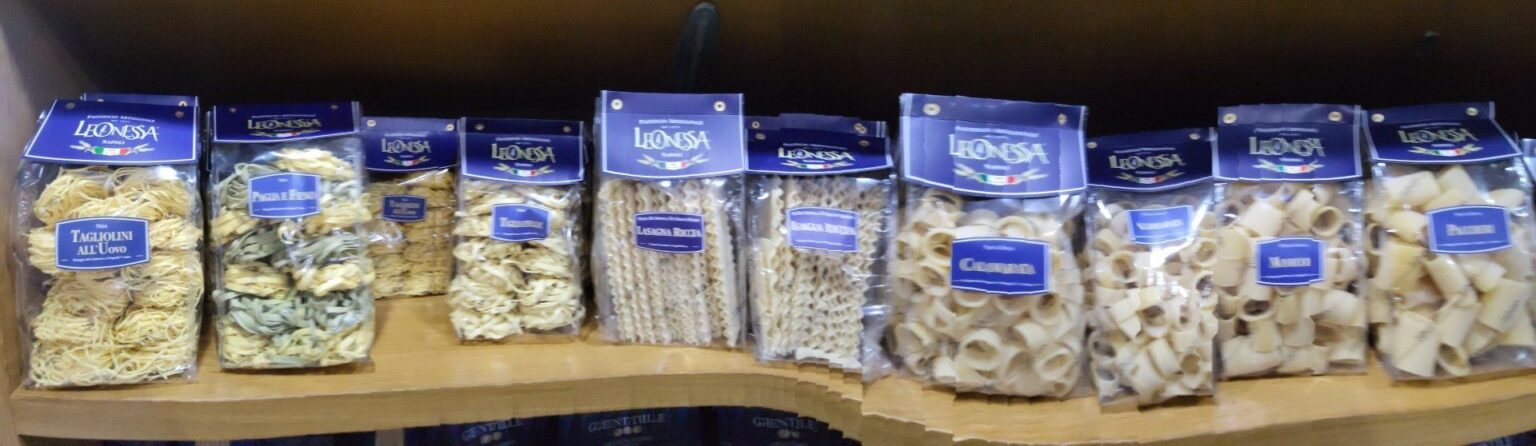 Troverete inoltre pane casareccio e la celebre pasta di Gragnano, che rappresenta un grande motivo di orgoglio non solo per la Campania, ma per tutta l’Italia. Troverete i prodotti dei pastifici quali: Rustichella d’Abruzzo, Pasta di Gragnano Gentile, pastificio artigianale Leonessa.